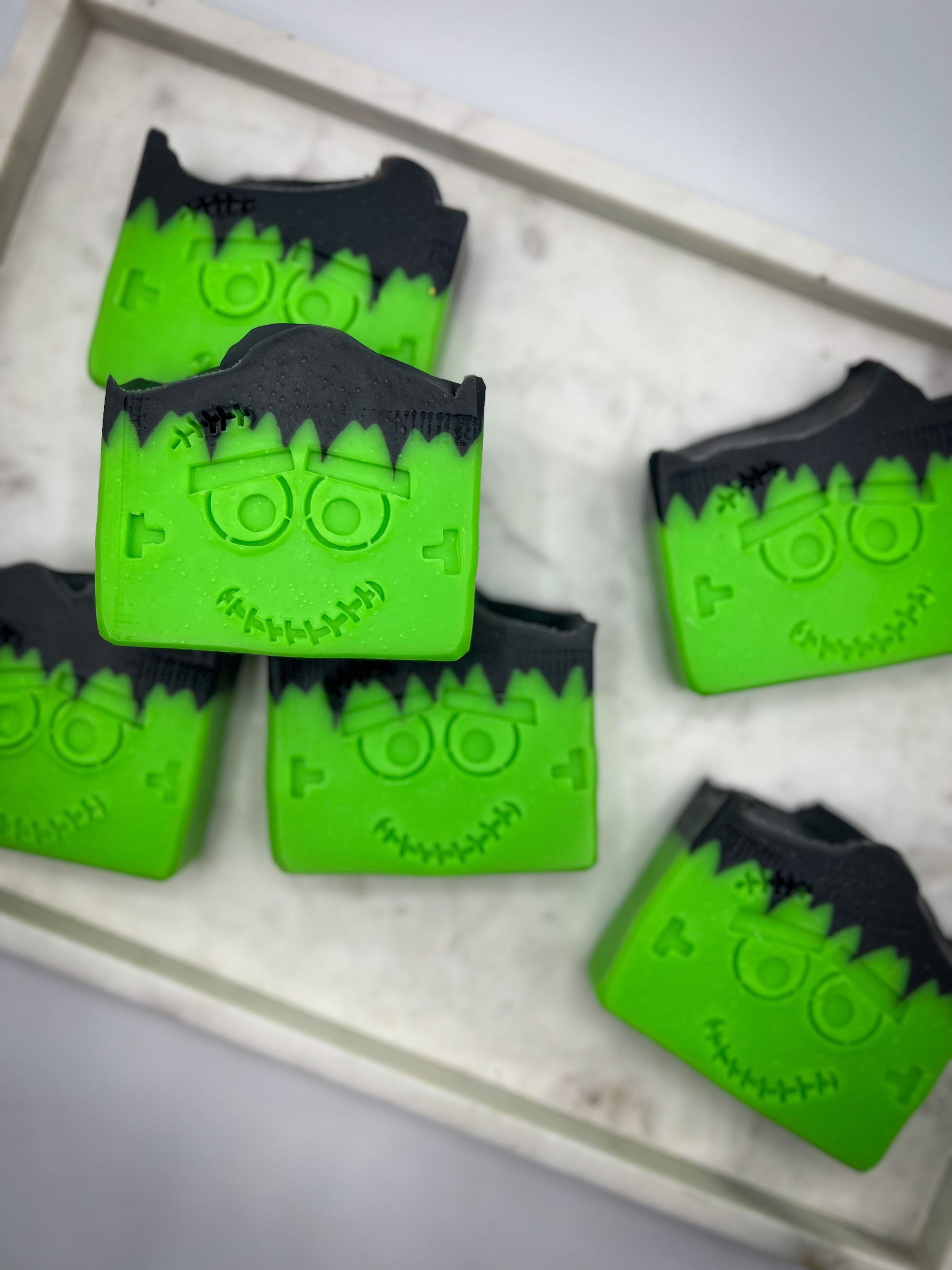 They’re baaaaaaaaack! Glow in the Dark Frankenstein Soaps made a comeback this year for our fall soap release! This years is scented in “Volcano”