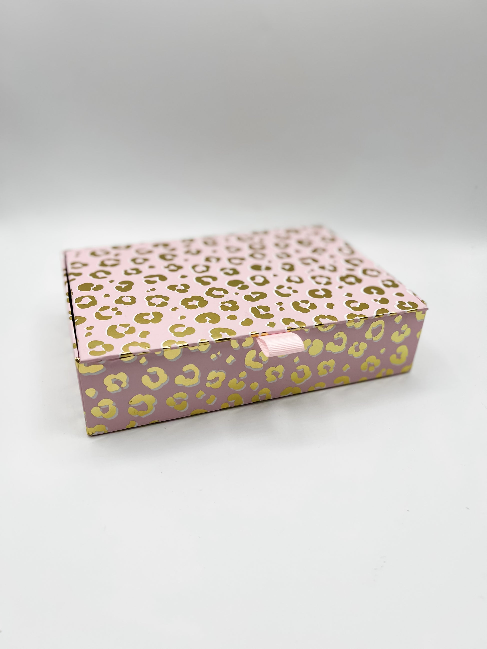 Medium boxes are 9x6.5x2.5 (not pictured, leopard print in medium available)