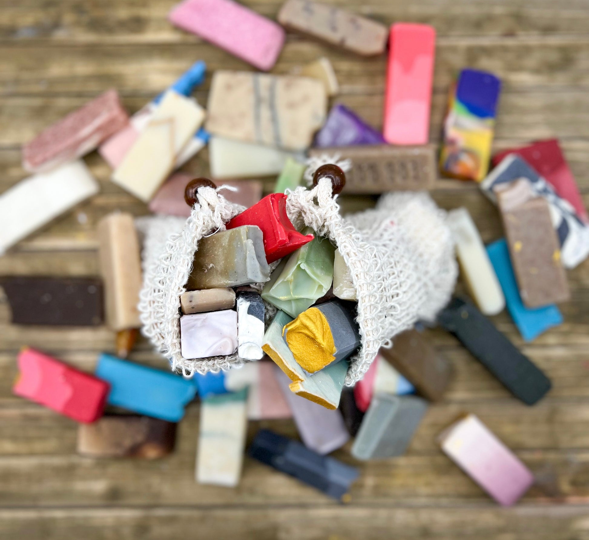 A soap bag full of mini soaps? Yes please! We fill each bag as full as it can be (usually around 10 soap samples chosen at random) You can use one at a time, or as many as you want with the included reusable soap sack!