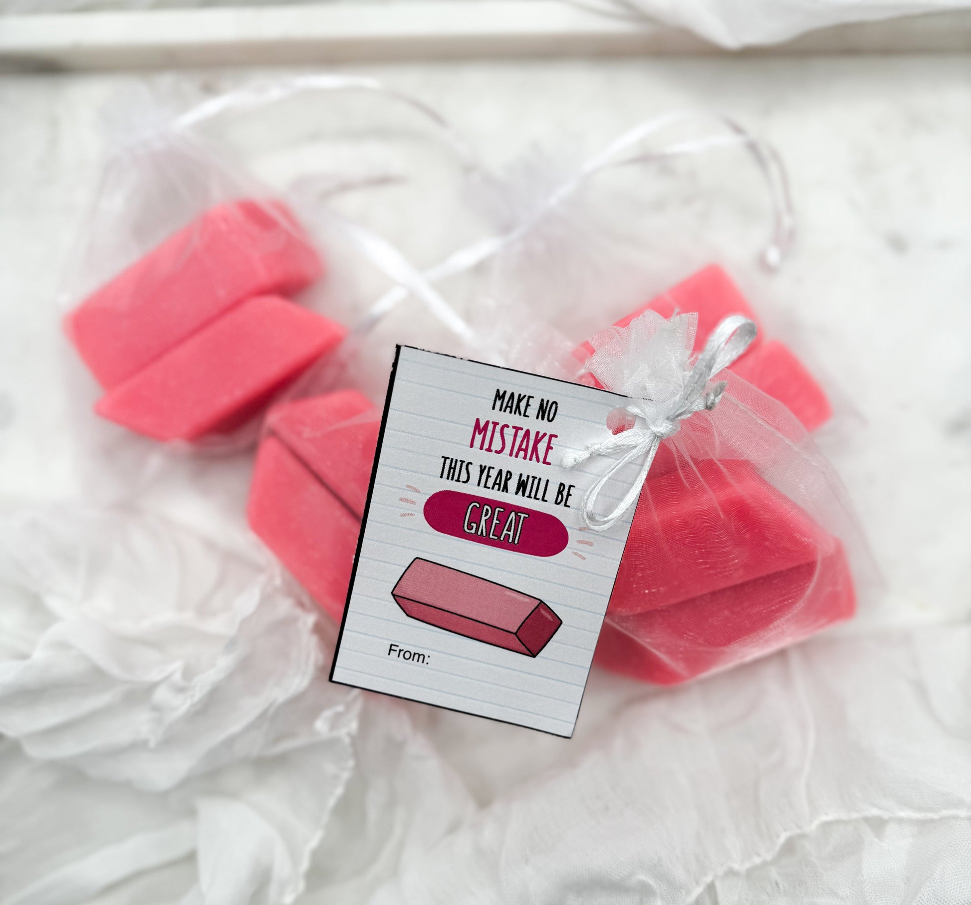 Looking for some Back-To-School Teacher/Staff Appreciation Gifts!? Have a look at these little guys! Each order comes with 2 “erasers” (remember, it’s soap….not a real eraser) and will have the pictured little tags tied to them all wrapped up in a cute, reusable bag! Get yours now and check off an item for your back to school lists! If you’d like to make a whole gift basket for your favorite staff member, we can do that too! Simply add items you wish to your cart, and head over to our gift page and pick a gift box and we will do the work for you!